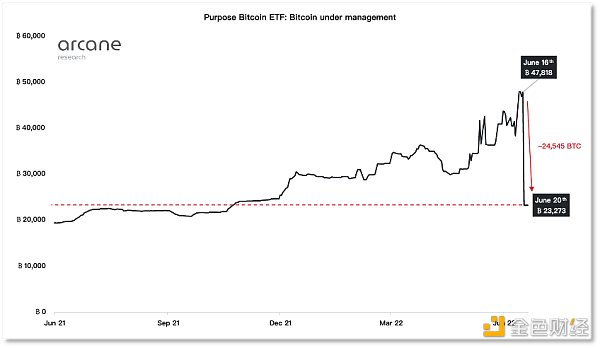 Purpose Bitcoin ETF 管理的 BTC 数量腰斩