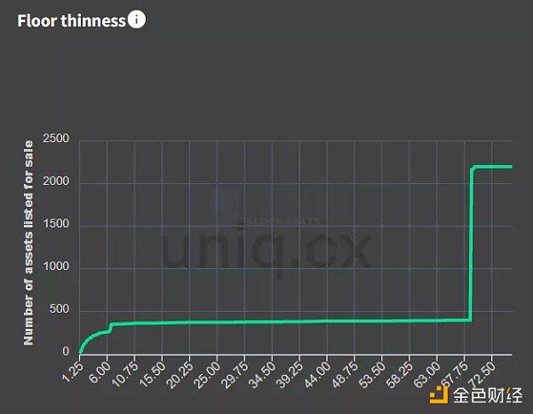 在全部 5,022 个 NFT 中,其中有 2,373 个处于挂单状态,其中挂单在 69 ETH 的有 1,885 个,占总挂单数的 79.43%。