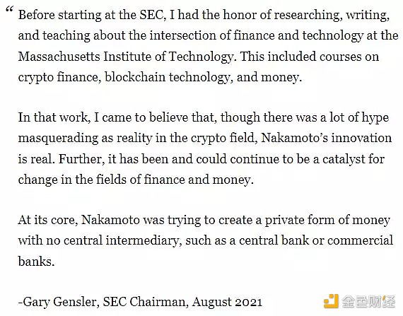 ——Gary Gensler,现任美 SEC 主席,2021 年 8 月