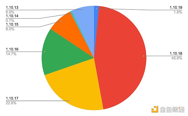 最后,客户端的多样性因版本的问题而进一步复杂化,这意味着并非所有的节点都在运行相同版本的 Geth。很大一部分 Geth 区块的生产者并没有持续的将他们的节点更新到软件的最新版本,而其他人则故意定制版本从而更好的将他们 MEV(矿工可提取价值)战略最大化(通常是 MEV-Geth 的一些分叉)。