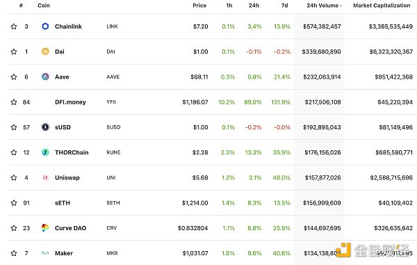 1900/1/1 0:00:001.DeFi代币总市值:359.67亿美元 DeFi总市值 数据来源:coingecko2.过去24小时去中心化交易所的交易量:16.