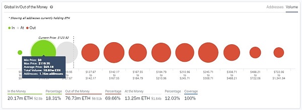 也就是说,目前约有120万个以太坊地址(实际上更少)正持有超过2000万个以极低价格购入的以太坊。根据IntoTheBlock的数据,目前,以太坊流通总供应量中只有约18.3%的以太坊是能“赚到钱”的。