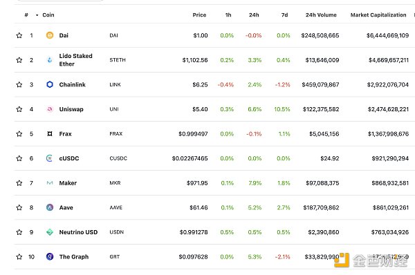 DeFi项目锁定资产前十排名及锁仓量 数据来源:defillama