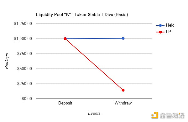 LP'ing 给他们总共剩下了 100 美元,而如果他们简单地持有,他们会有 505 美元。对于流动性池的储户来说,这似乎是一个相当糟糕的情况,因为应计费用不能补偿这种程度的损失。