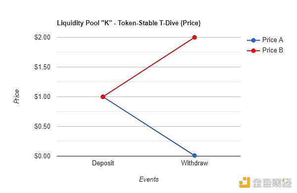 跳水者可以选择在他们立即撤出后巩固他们的稳定币 B 头寸,以现货价格买入代币 A。在恢复到初始价格的前提下,这进一步放大了跳水策略的收益。