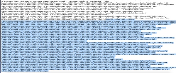 把 boomerang.min.js 代码下载下来,前面都是正常的代码,但是末尾有一段经过加密的代码: