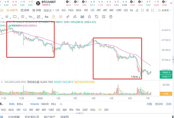 目从下跌幅度来看,比特币的跌幅从4月初开始,已经接近50%。