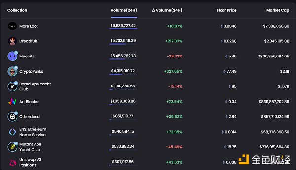 24小时内销售涨幅前十的NFT 数据来源:NFTGO