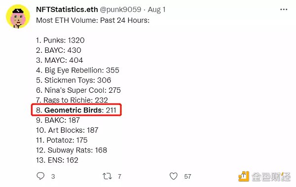Geometric birds 最高交易单价 28E(图源:NFTGo)