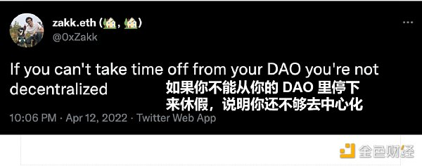 这只是 DAO 可以开始考虑为贡献者提供福利的一种方式。当然,对于许多 DAO 来说,带薪休假更像是一种以后才要考虑的东西——他们还没有盈利,所以他们目前无法承受这个成本。但是,现在就开始考虑这些更精细的细节,可能会对贡献者的心理健康和整体 DAO 的成功有很大的帮助。