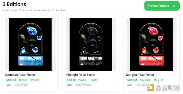 Proof of Love发行了3款玫瑰NFT作为参与门票,分别是0.1ETH、0.5ETH、1ETH。NFT持有者可以参与选角,从男女嘉宾到主持人都是经过投票产生,他们还可以参与剧本策划、拍摄过程一些情节的干预(比如给看好的一对送上饮料),最高档NFT持有者还能亲临拍摄现场。每集制作完毕,该集都会被铸造成1/1的NFT到ZORA平台上进行拍卖,拍卖获得的资金30%作为大奖给到季末牵手成功的人,10%作为下一集的奖励(每集最后被相中的嘉宾不想牵手,可以赢取奖金),40%进入DAO财库,还有15%由拍卖所得者决定去向。不考虑Web3、Crypto元素,这部完全可以作为搞笑综艺来看看。