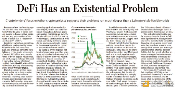 在《华尔街日报》的这篇报道中,整篇都充斥着对所谓 DeFi 失败的谴责。?