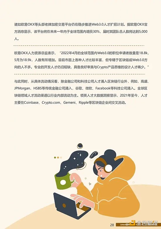欧易OKX&领英正式发布全球首份《2022全球区块链领域人才报告-Web3.0方向》,报告全文近2万字,耗时近3个月,数据样本覆盖180个国家,囊括了全球区块链行业概览,人才现状以及人才发展趋势与建议三大板块。