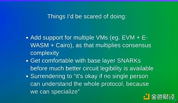 增加对多个虚拟机(EVM、E-WASM、Cairo)的支持,从而增加共识的复杂性;