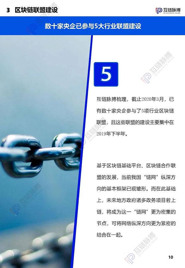 [互链脉搏按]“1024会议”后,区块链技术上升至国家战略,央企作为“国家战略”执行的重要力量。互链脉搏特发布《2020年中央企业区块链发展报告》,从涉足区块链的中央企业概述、中央企业底层区块链建设情况、中央企业参与区块链联盟情况、中央企业区块链应用情况四方面展开介绍,并探讨中央企业区块链的应用价值与发展思考。