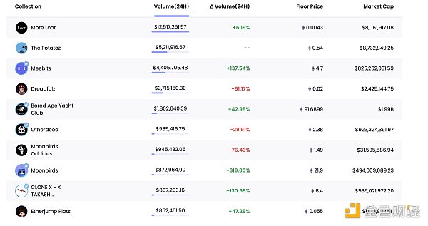 24小时内销售涨幅前十的NFT 数据来源:NFTGO