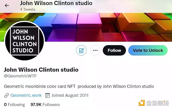根据 Geometric birds?官推的描述:这个 NFT 项目由一个 John Wilson Clinton 工作室发起,John Wilson Clinton 是匈牙利当代著名的几何立体抽象画家,他使用几何元素创作了一系列独特的艺术作品,其中他的画作《匈牙利公主》在佳士得秋季拍卖会上以 400 万欧元成交。另外,8 月 12 日在匈牙利国家美术馆 B 馆会有他的专场艺术展览。