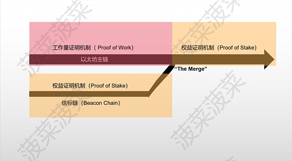 正在与目前POW机制主链平行运行的POS机制信标链将会在“The Merge”升级后与主链合并并替代POW机制成为主链新的共识机制。