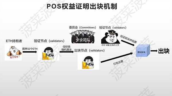 在POS权益证明机制下信标链将会根据币龄随机分配验证节点负责提议区块并需要通过2/3网络节点的验证投票后才可出块,在极端情况下协议将会启动紧急状态解决无法出块的情况。