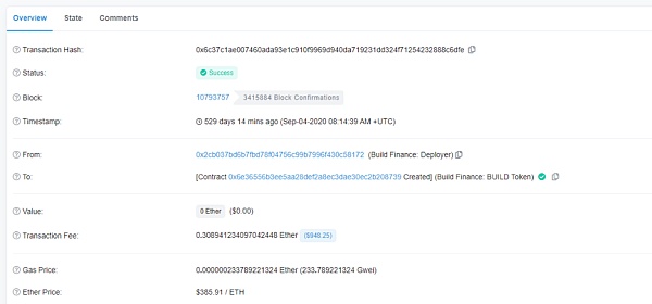 通过对项目的交易追踪,我们发现2022年2月12日Build Finance?项目被攻击者窃取了治理权限,接着向0xdcc8A38A地址分三次铸造了超过10亿的BUILD代币。