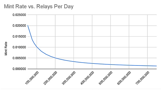 伴随Pocket中继数量大幅增加,每日铸造的Pokt也逐渐增长,因此团队核心成员提出新的协议以限制目前的高通胀速度。根据该函数能够有效稳定高中继下的代币膨胀速度,从而有一个更为准确的通胀预期。