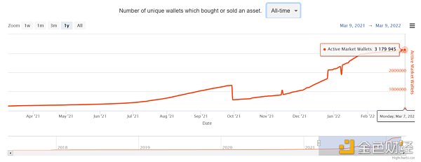 根据Nonfungible.com数据显示,目前全平台NFT活跃玩家地址稳定超过300万个,年增速超250%,根据NFTGO数据,全平台NFT日活跃玩家地址也超过5万个;全平台NFT交易次数稳超3,000万次,年增速超700%;交易总额接近230亿美元。对标到全球开户账号数量,目前全平台NFT活跃地址微不足道,由此可见,NFT行业的未来空间广阔。