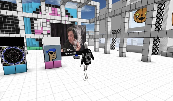 在 Cryptovoxels 虚拟世界中,一件 Saint Fame 的 $FAME 衬衫正以数字的形式被穿着。