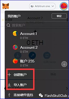 参数配置好后,点击下方保存,即成功创建Arbitrum One钱包,如果想要继续增加钱包,可以通过导入以太坊钱包私钥来创建,也可以直接点击创建账户,创建完成后记得保存私钥即可。