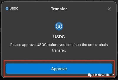 点击“transfer”、点击“APPROVE”,然后在钱包中确认以允许合约调用钱包中的USDC Token。