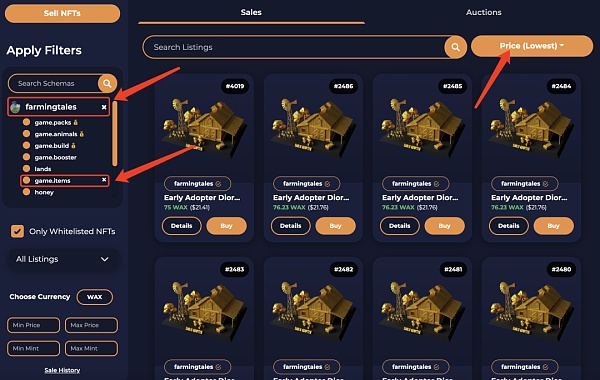 入场直接购买Early Adopter和1只Hen。目前二级市场普遍价格分别为:160WAX(50U)和1099WAX(328U),也就是400U入场;