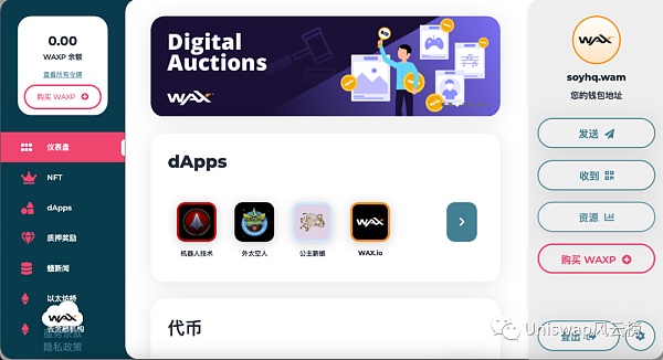 如果你的资金在以太钱包,WAX官网提供桥接功能。