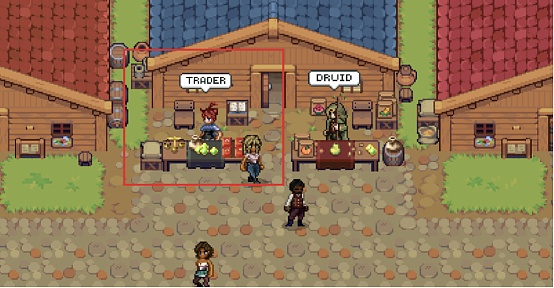 图中便是DeFi Kingdoms的市场,框中的像素人便是DEX的化身,与他互动便可进入交易界面。