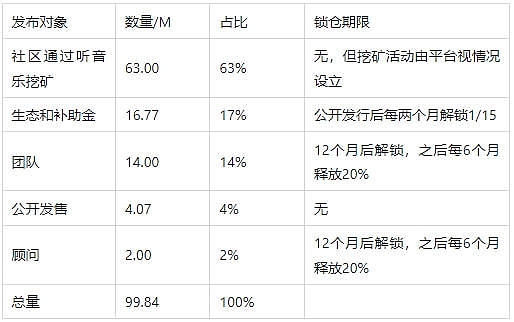 付费订阅模式还没有上线,平台上的多数音乐都可以免费收听,但在白皮书中对付费订阅模式做了很详细的规划。订阅价格为每月8美元,可用法币支付、或以7折价格用项目代币$ROCKI、或无息质押项目代币$ROCKI来支付。订阅收入会按照每首音乐被收听时长比例来分配,整体流水的70%~80%都会给到艺术家,10%~20%用来回购代币或作为激励,其余才归属平台。