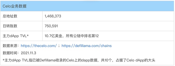 我们发现,尽管Terra的流通市值是Celo的近20倍,但Celo与稳定币龙头项目Terra在部分核心数据上相差并不大,比如: