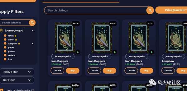 https://wax.atomichub.io/market?collection_name=journeytogod&order=asc&schema_name=weapons&sort=price&symbol=WAX