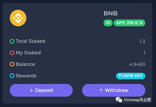 KEY Token 根据用户质押资产占当前农场类型总质押的比例分配。