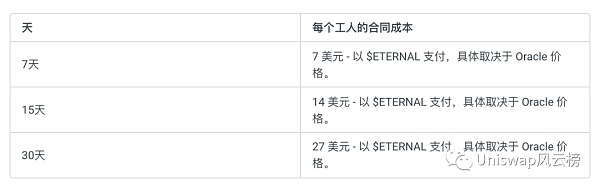 尝试将工作人员添加到具有有效合同的车队时,您必须支付相当于车队可用合同天数的费用才能加入该车队。例如,如果您有一个有 3 个有效合同日的车队,并且您添加了一个新工人,则该工人必须以$ETERNAL支付 0.5 美元 + 3 美元(3 个合同日)才能加入该车队并能够进行挖矿。