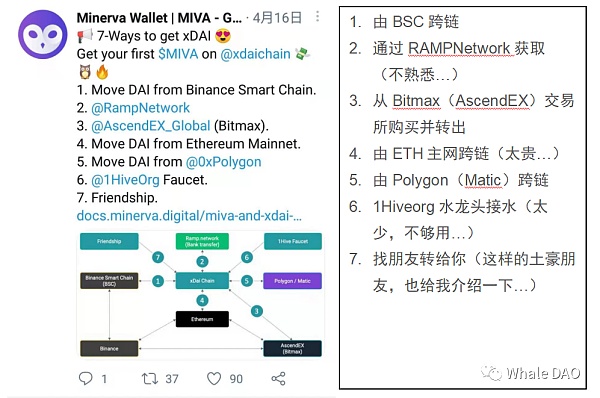 基本过程详见https://docs.minerva.digital/miva-and-xDai-chain/how-to-get-xDai/5-move-dai-from-polygon,刚好我matic钱包有点DAI,然后就实验了一下,很丝滑。拿BSC上的DAI跨链,也是类似的过程。