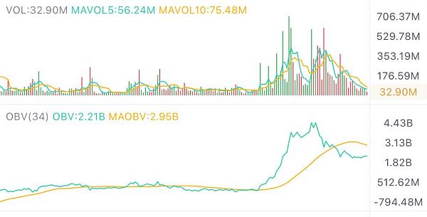 日线观察到前几日的连续拉升量能是逐步向上的,直到昨天量能突然放大到前天的两倍有余,说明市场出现了抢购,目前的回落应该属于部分多头平仓导致的,这在小时OBV中也可以很直观的看到,接下来又会进入震荡时间,震荡区间吸筹后,还有机会继续向上;下方可关注4小时布林带中轨,今天在8350美金,上方压力8950美金。