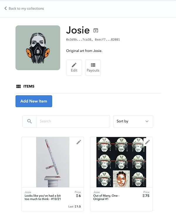 而 Add New Item 按钮可以帮你创建一个新的 NFT。