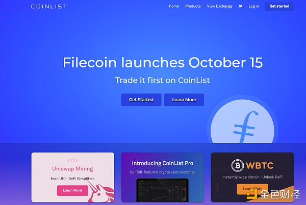 其次,Coinlist有自己的交易平台,售卖的项目会第一时间开放交易,或许存在套利机会。比如,近期热门的Filcoin主网代币就会第一时间上线Coinlist交易所,如果价格合适,可以赶在上线币安、火币、Coinbase等主流交易所之前介入。