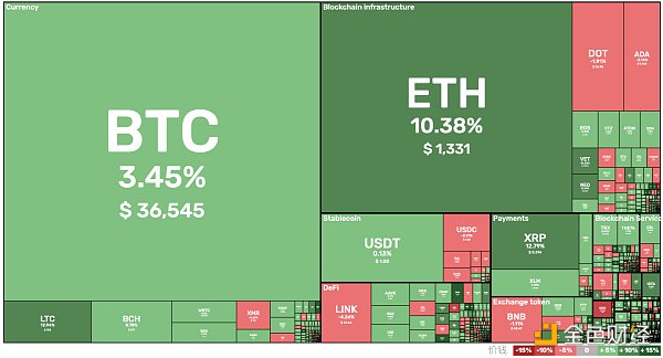 微博大V栋哥表示,今天的行情一路上涨,比特币涨幅虽然不大,但是以太坊的涨幅还是比较可观,最近一段时间的情况是异常的相似,比特币横盘的时候就是其他主流币齐飞的时候,轮动效应的产生使得行情持续上涨.有消息称以太坊要持续拉盘到四五千美元的状态,具体情况是怎样还是需要观察才能得到,不过今年的以太坊确实是比较的强势,同时DeFi热度也是使得一系列的币种持续上涨。