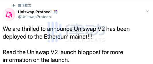 9 月 17 日,Uniswap 推特今天发布消息称,其协议管理代币 UNI 现已在以太坊主网上发布。以太坊地址: