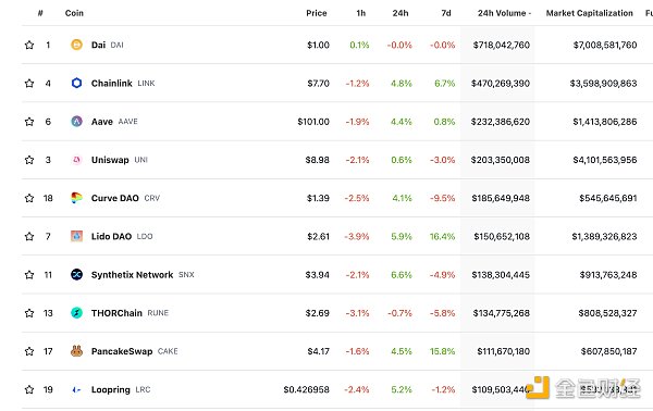 过去24小时去中心化交易所的交易量 数据来源:coingecko