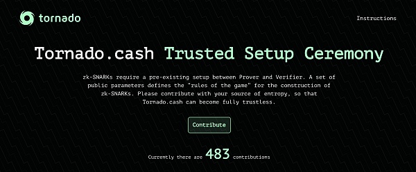 Tornado.cash 是一个基于以太坊的匿名交易工具,通过它,你的交易信息便可以不被人知,真正实现了匿名化,然而实现匿名的过程是通过 zk-SNARK 技术来生成证人和验证者的密钥,这一过程被称为 Trusted Setup,由于它存在中心化的风险,因此为了以安全的方式完成此操作,以确保没有人能够伪造证据或窃取用户资金,必须通过去中心化的方式进行,简单说就类似于通过分布式记账来抵御51%攻击。于是 Tornado.cash 发起了 Trusted Setup Ceremony。为了主持正义,我毅然掺和了进去,操作很简单: