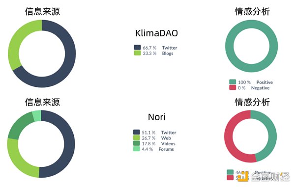 而从信息来源和相关话语的情感分布来看,Nori 具有最广泛的讨论受众,但同样存在最明显的喜好分歧。诚然,选取的有限的数据样本导致了这样的分析结果,对于 KlimaDAO 相关的数据结果显示情感分析达到 100% 的正面,与平日认知不符合。导致这样的结果出现的原因,本文猜测与数据样本的有限相关。7 月份处于市场熊市,整体低迷,而关注 ReFi 领域的人更是相对小众的群体。ReFi 的叙事天然带着一些「正确」的属性,因此猜测人们对于在 ReFi 领域走在前端的 KlimaDAO 是表现出来的正面情绪。KlimaDAO 注重的金融属性和金融玩法,很难不让人将其与资金盘联系,因此,收集到的数据展示的正面情绪,或许是一种浮躁的存在。相较之下,Nori 数据背后的情感或许是较为真实的体现。作为现实世界与 Web3.0 联系的桥梁之一,人们表现出一定的担忧与质疑或许才是常态。本文认为这样的数据符合 Nori 项目的情况,并将依托于此进行优势和风险分析。