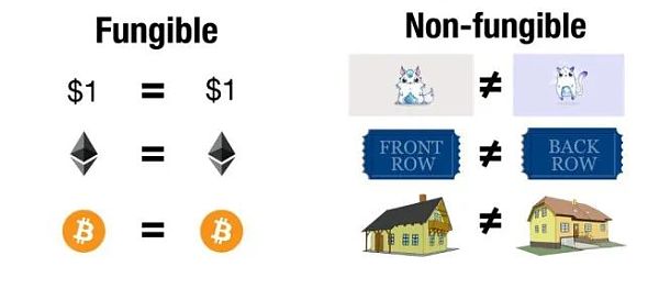 比特币我们比较熟悉,但比特币是同质化代币,在区块链上,一个比特币可以与另一个比特币互换这就叫做“同质化”。再比如你有一张 10 元的钞票,我可以再给你换一张 10 元的钞票,它们的效果都是一样的。