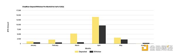 ChipMixer:2022 上半年用户共计存款 26,021.89 BTC 到 ChipMixer,共计从 ChipMixer 提款 14,370.57 BTC。