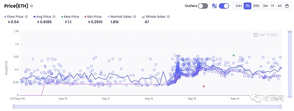截至9月15日的数据来看,从正式推出之后,除了开盒当天有大量换手外,Renga的流动性降低,但前几天9月12号左右,也就是我们上文提到的日交易榜首的那几天,又出现了较高的流动性。