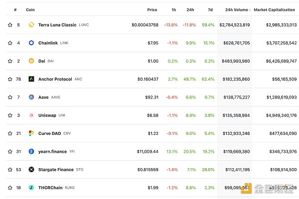 DeFi项目锁定资产前十排名及锁仓量 数据来源:defillama